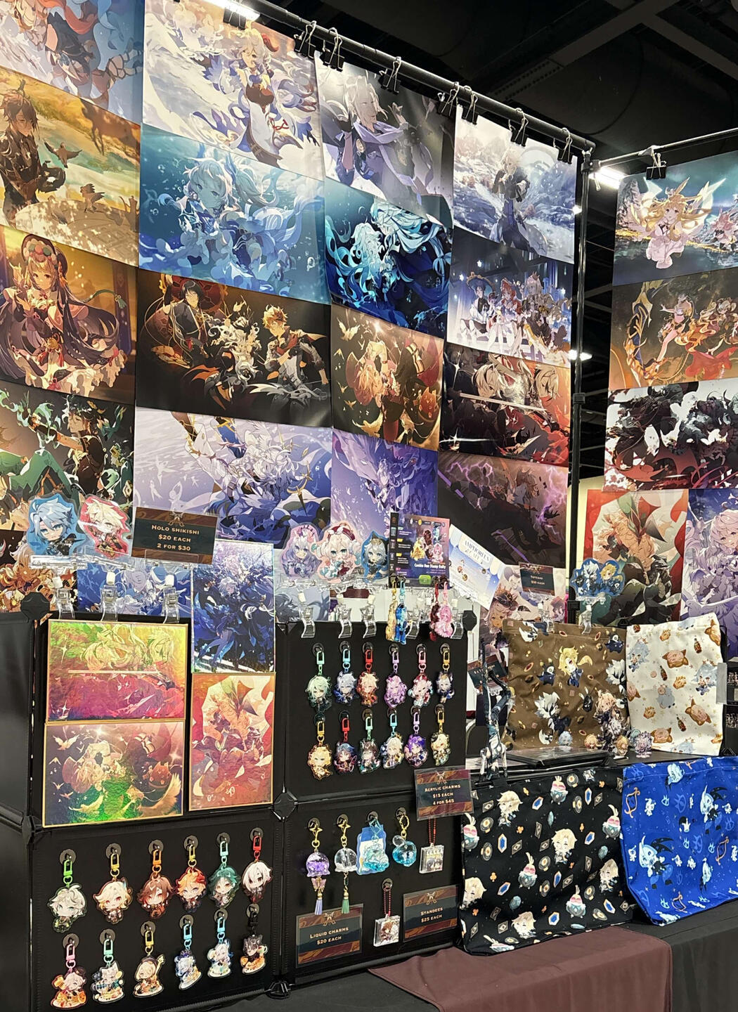 acrylic charms, shikishi, artbooks, posters, postcards, wallets, totebags